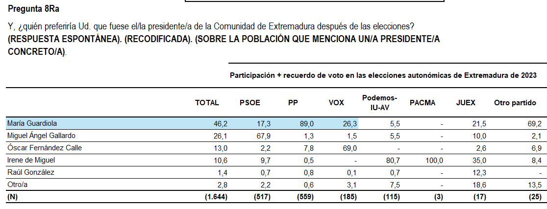 Los datos confirman el fenómeno. Guardiola es la preferida para el 37% de los extremeños.