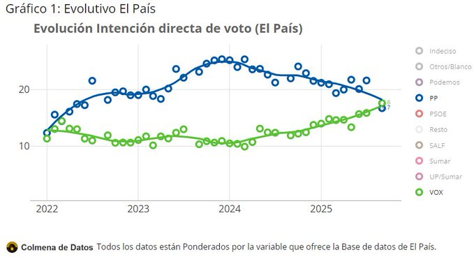 Primera vez que Vox supera al Partido Popular en Intención directa de voto en una encuesta de El País