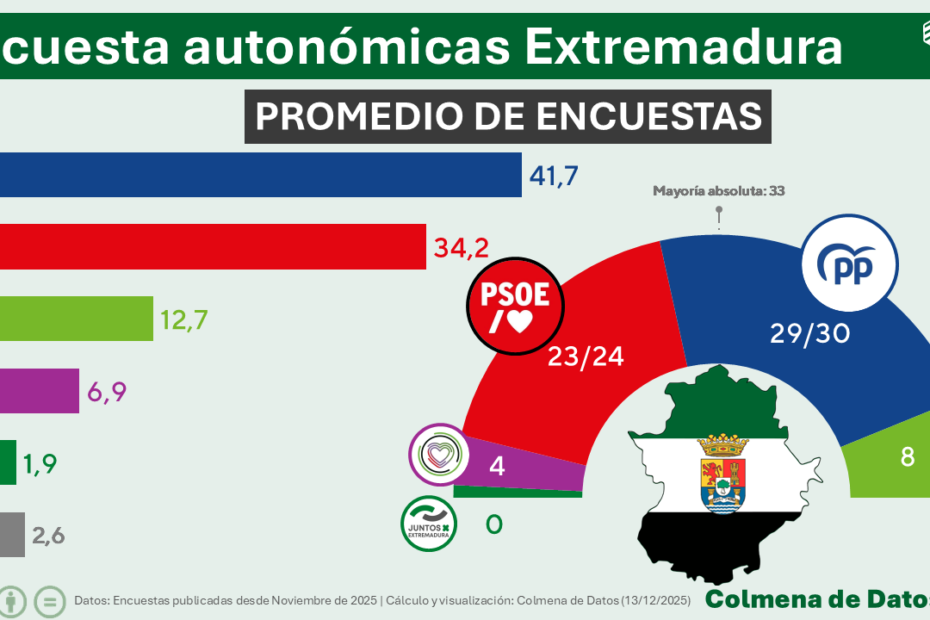 Última Media de Encuestas elecciones EXTREMADURA (3ª semana Diciembre 2025)