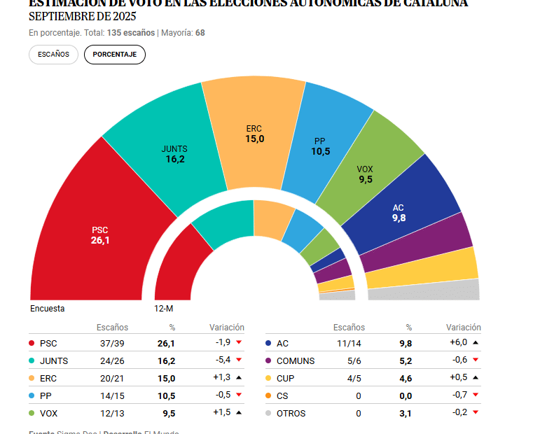 Encuesta elecciones autonómicas CATALUÑA de Sigma Dos para El Mundo (14 septiembre 2025)