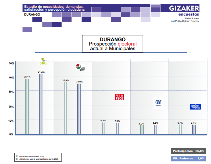 Encuesta elecciones municipales Ayuntamiento de DURANGO de Gizaker (22 septiembre 2025)