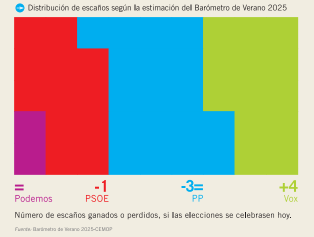 Reconfiguración de espacios: Vox arrebata votos al PP y el PSOE consolida su hegemonía a costa de Sumar y Podemos