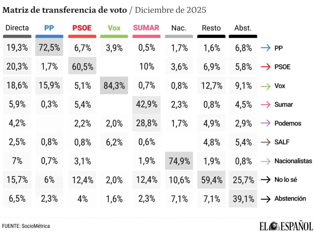 El mensaje es claro: el principal enemigo de la coalición de Sánchez no es Feijóo, sino la abstención de sus propios votantes. Los datos económicos positivos no calan, y el desgaste por los escándalos y la gestión se transforma no en un voto de castigo hacia la oposición, sino en una deserción silenciosa del sistema. El PSOE se juega, por tanto, una carrera casi imposible: no necesita convencer a los indecisos, necesita re-movilizar a un electorado propio que ha perdido la fe y las ganas de votar. Mientras, Vox, con un relato claro y un votante comprometido, sigue avanzando.