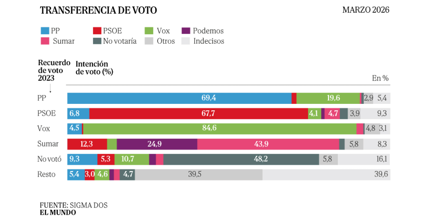 Estimación de voto de Sigma Dos para El Mundo Marzo de 2026